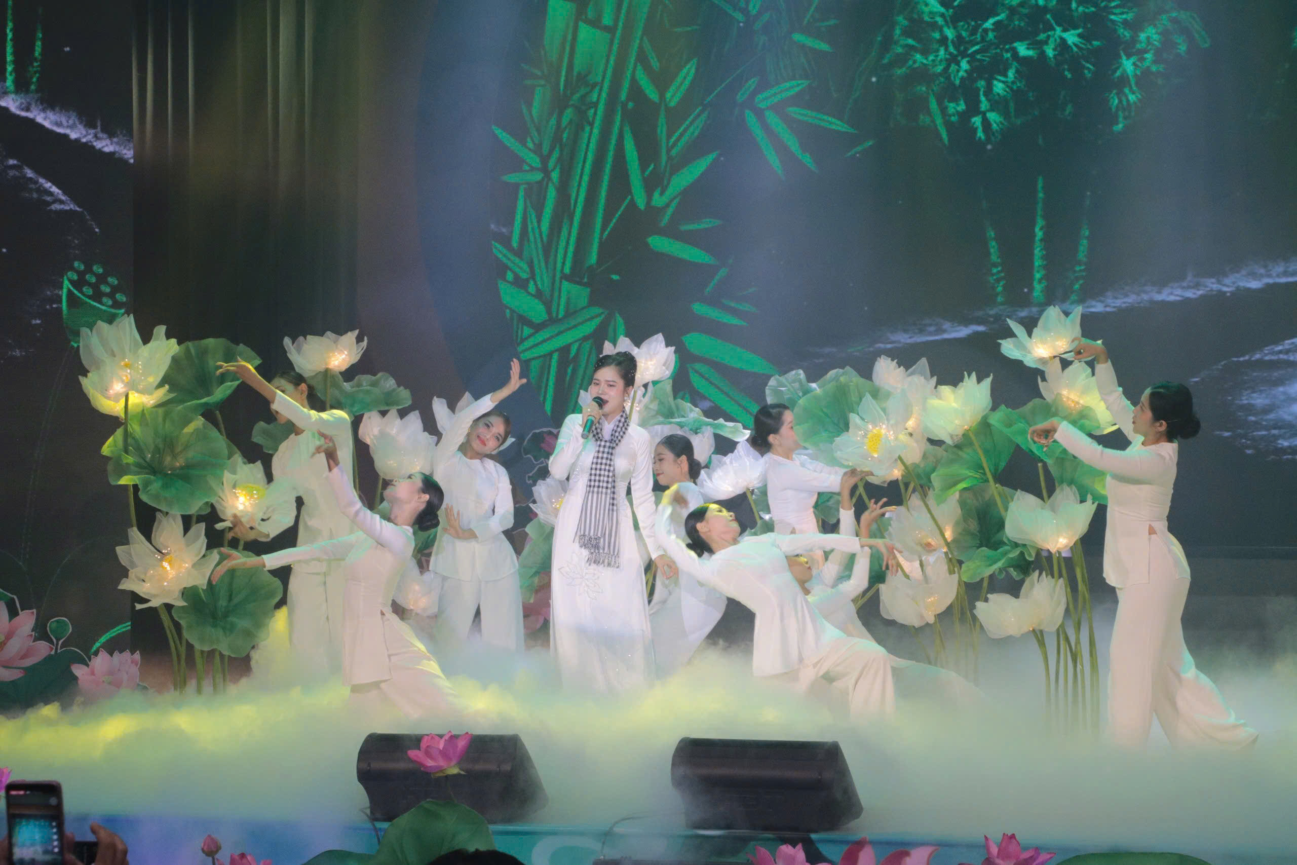Với chủ đề “Miền Nam nhớ mãi ơn Người”, chương trình nghệ thuật của An Giang đã để lại ấn tượng sâu sắc trong lòng Ban Tổ chức, Ban Giám khảo và đông đảo khán giả yêu nhạc tại Hội diễn “Tiếng hát từ Làng Sen” năm nay. Xuất phát từ vùng đất đầu nguồn Tây Nam Tổ quốc – nơi hội tụ của nhiều dân tộc Kinh, Khmer, Chăm, Hoa sống chan hòa nghĩa tình – đoàn nghệ thuật An Giang đã mang theo tình cảm chân thành, niềm tự hào sâu sắc về quê hương và lòng biết ơn vô hạn dâng lên Chủ tịch Hồ Chí Minh.