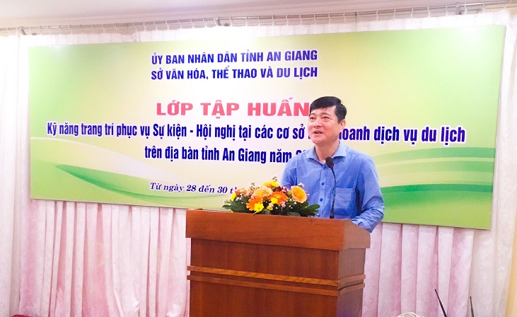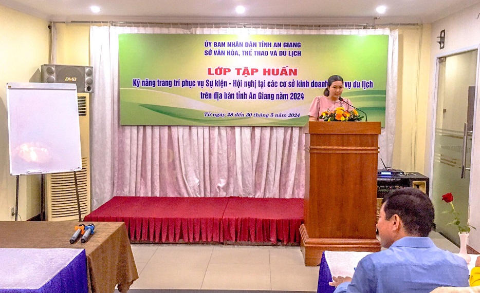 Sáng ngày 28/5/2024, Sở Văn hóa, Thể thao và Du lịch An Giang phối hợp với Trường Cao đẳng Du lịch Sài Gòn tổ chức khai giảng lớp “Tập huấn kỹ năng trang trí phục vụ Sự kiện - Hội nghị tại các cơ sở kinh doanh dịch vụ du lịch trên địa bàn tỉnh An Giang”, lớp tập huấn diễn ra trong ba ngày, từ ngày 28/5/2024 đến ngày 30/5/2024.