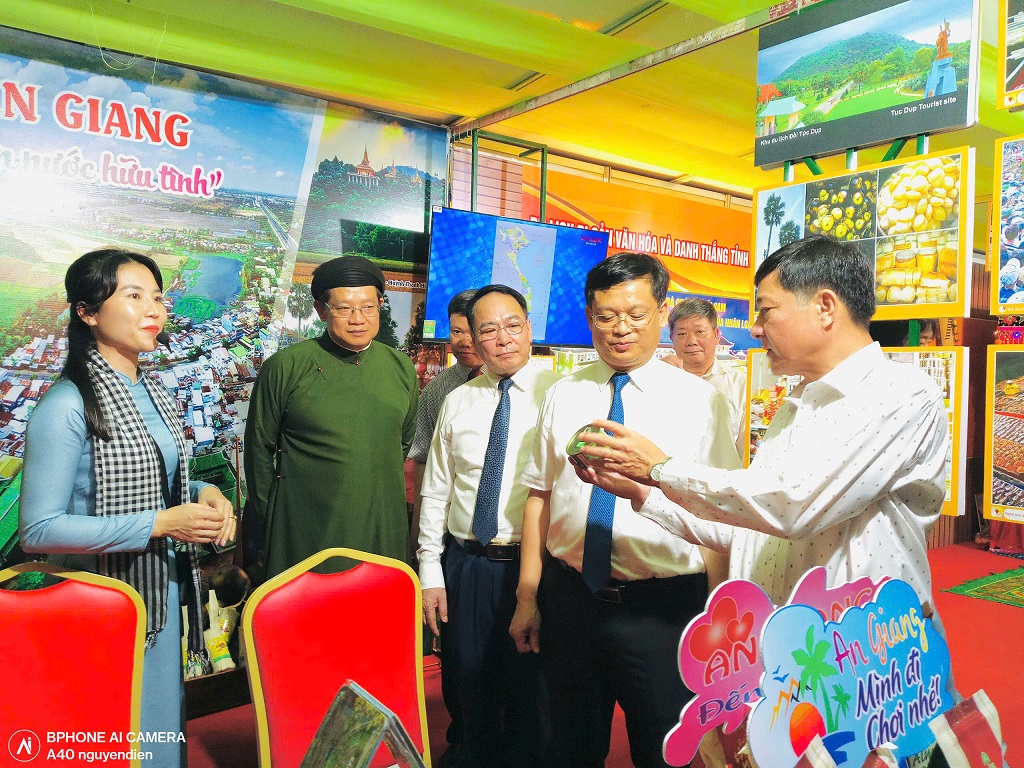 Tại gian triển lãm, Sở Văn hóa, Thể thao và Du lịch tỉnh An Giang đã giới thiệu với người dân Cố Đô và du khách các hình ảnh các di tích lịch sử văn hóa, tiêu biểu, các khu điểm du lịch nổi tiếng của tỉnh, lễ hội truyền thống đặc biệt Lễ hội Vía Bà Chúa Xứ Núi Sam là Di sản Văn hóa phi vật thể của nhân loại được UNESCO công nhận năm 2024 và trang phục dân tộc của đồng bào dân tộc Chăm, tái hiện không gian phòng cưới của đồng bào dân tộc Chăm. Bên cạnh đó, Sở cũng giới thiệu các chương trình, dịch vụ du lịch, các sản phẩm du lịch, đặc sản địa phương trên địa bàn tỉnh An Giang đến với du khách và khách tham quan triển lãm. Đặc biệt, trong suốt thời gian diễn ra sự kiện, Sở đã giới thiệu với du khách văn hóa ẩm thực truyền thống của dân tộc Chăm Islam An Giang, do căc nghệ nhân trình diễn trực tiếp tại gian hàng tỉnh An Giang như: Bánh bò nướng, bánh bông lan nướng, bánh Cánh Bèo, Bánh Kẹo... thu hút đông đảo người dân, du khách đến tham quan gian hàng An Giang và thưởng thức đặc sản ẩm thực địa phương.