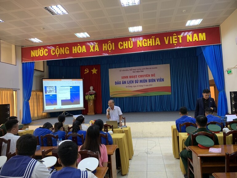 Đặc biệt với chương trình giao lưu sinh hoạt chuyên đề, diễn giả Tiến sĩ Ngô Quang Láng – Phó Chủ tịch Hội Khoa học Lịch sử tỉnh An Giang đã chia sẻ đến cán bộ chiến sĩ Bộ Chỉ huy quân sự tỉnh, Lữ đoàn 962, đoàn viên thanh niên Sở Văn hóa Thể thao và Du lịch, các bạn sinh viên trường Đại học An Giang khái quát tiến trình mở cõi, lịch sử hình thành và phát triển của An Giang, cũng như ý nghĩa ngày truyền thống tỉnh An Giang 22/11.