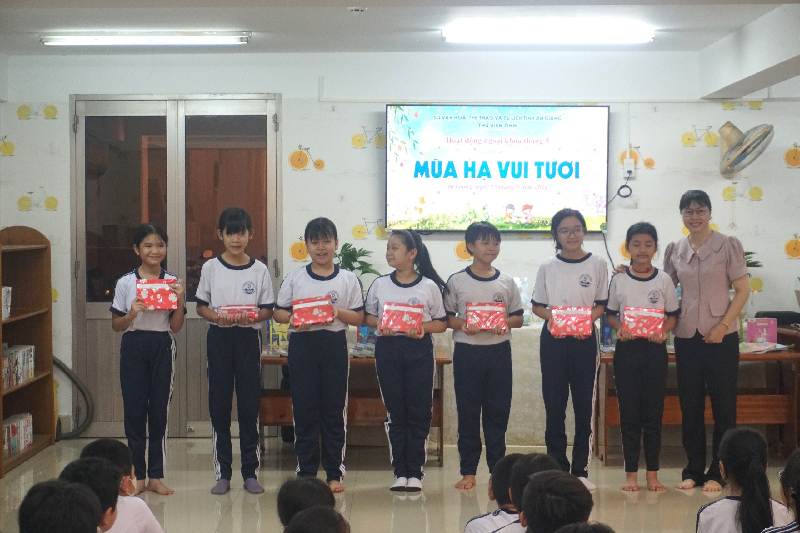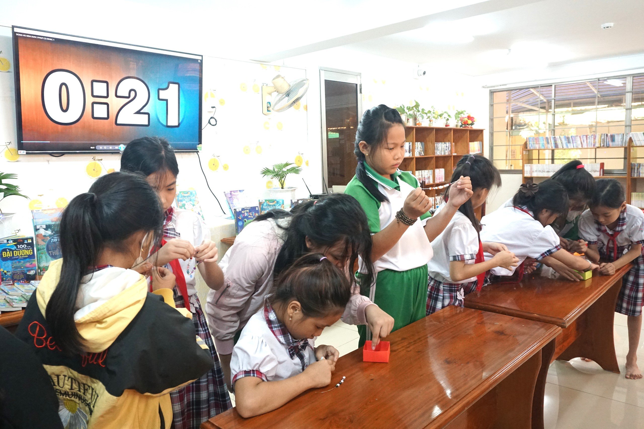 Đối với các bạn học sinh tiểu học, có sự tham gia của hơn 150 bạn cùng với các Thầy, Cô phụ trách, các buổi sinh hoạt đã diễn ra trong không khí vui tươi và ấm áp. Thông qua 03 nhóm trò chơi “Mình đi siêu thị sách”, “Vòng tay yêu thương”, “Xây tháp” và trò chơi vận động tập thể “Khát vọng tuổi trẻ”, Thư viện lồng ghép để giới thiệu các chủ đề về sách để nghiên cứu học tập, các tài liệu giải trí mới, không gian mở phục vụ hiện có tại phòng Thiếu nhi. Ngoài ra, còn giới thiệu phương thức mở thẻ đọc thiếu nhi, cách thức tra tìm tài liệu, quảng bá chuỗi hoạt động hè 2024 sắp diễn ra…