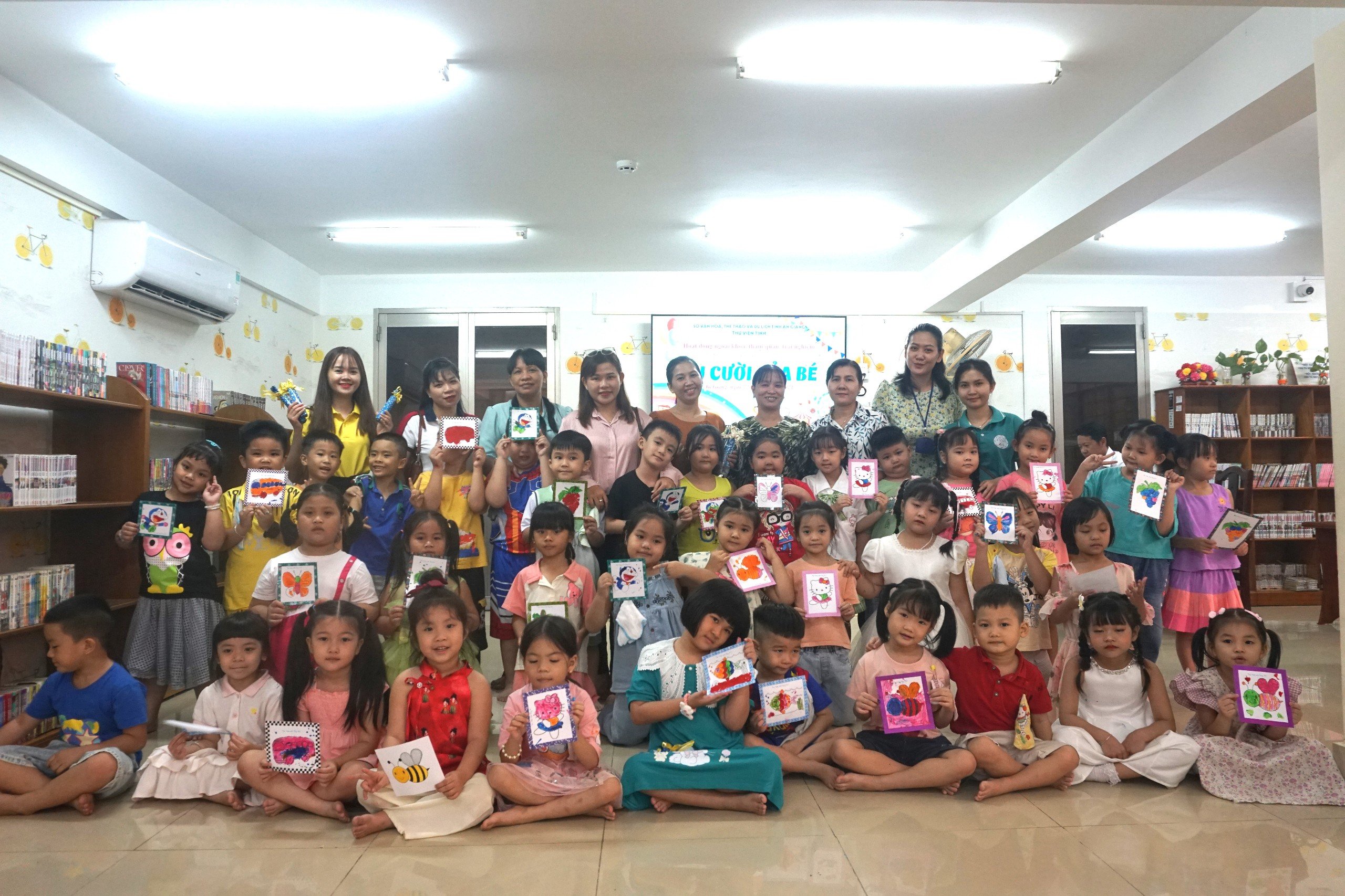 Tiếp theo đó là đoàn tham quan, trải nghiệm thu hút 130 bé ở độ tuổi mầm non, với một số các hoạt động vui chơi có nội dung “Đôi bàn tay kể chuyện”, “Tớ là ong chăm chỉ!”, “Tô màu nắng hạ”, “Vận động cùng Baby Shark”. Hoạt động đã diễn ra thu hút các bé qua cách kể chuyện bằng đôi tay. Nhóm trò chơi vận động thô với bóng và thử thách bé nhận diện, phân biệt màu sắc. Đặc biệt, nhóm trò chơi vận động tinh là những khung tranh do đôi tay khéo léo của các bạn nhỏ tự tạo nên những màu sắc vui nhộn. Sau hoạt động, các bạn được Thư viện tặng khung tranh về nhà làm kỷ niệm đầu tiên khi đến với Thư viện. Cuối buổi hoạt động các bé vận động thư giãn cùng nhịp điệu Baby Shark, với âm điệu quen thuộc và gần gũi mang đến sự kết nối và ấn tượng tốt đẹp ban đầu cho buổi sinh hoạt ngoại khóa.