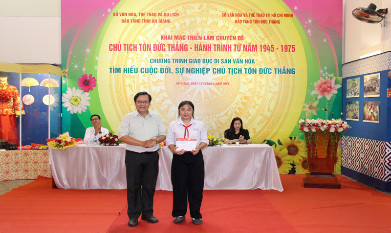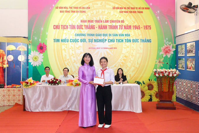 Hướng đến chào mừng kỷ niệm 50 năm Ngày Giải phóng miền Nam, thống nhất đất nước (30/4/1975 - 30/4/2025) và 137 năm Ngày sinh Chủ tịch Tôn Đức Thắng (20/8/1888 - 20/8/2025). Sáng ngày 18/4 tại Bảo tàng tỉnh An Giang đã khai mạc triển lãm chuyên đề “Chủ tịch Tôn Đức Thắng - Hành trình từ năm 1945-1975” và phát động chương trình giáo dục “Thi tìm hiểu cuộc đời, sự nghiệp Chủ tịch Tôn Đức Thắng” dành cho các em học sinh trên địa bàn thành phố Long Xuyên, tỉnh An Giang.